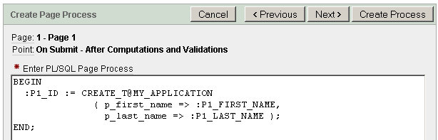CREATE TABLE table_owner.tI then create some basic objects in the TABLE_OWNER schema including a function that returns the ID of the newly created record. On to APEX where I have created a simple one page app. This workspace is mapped to my schema, CJUSTICE and the database link is private to that schema.